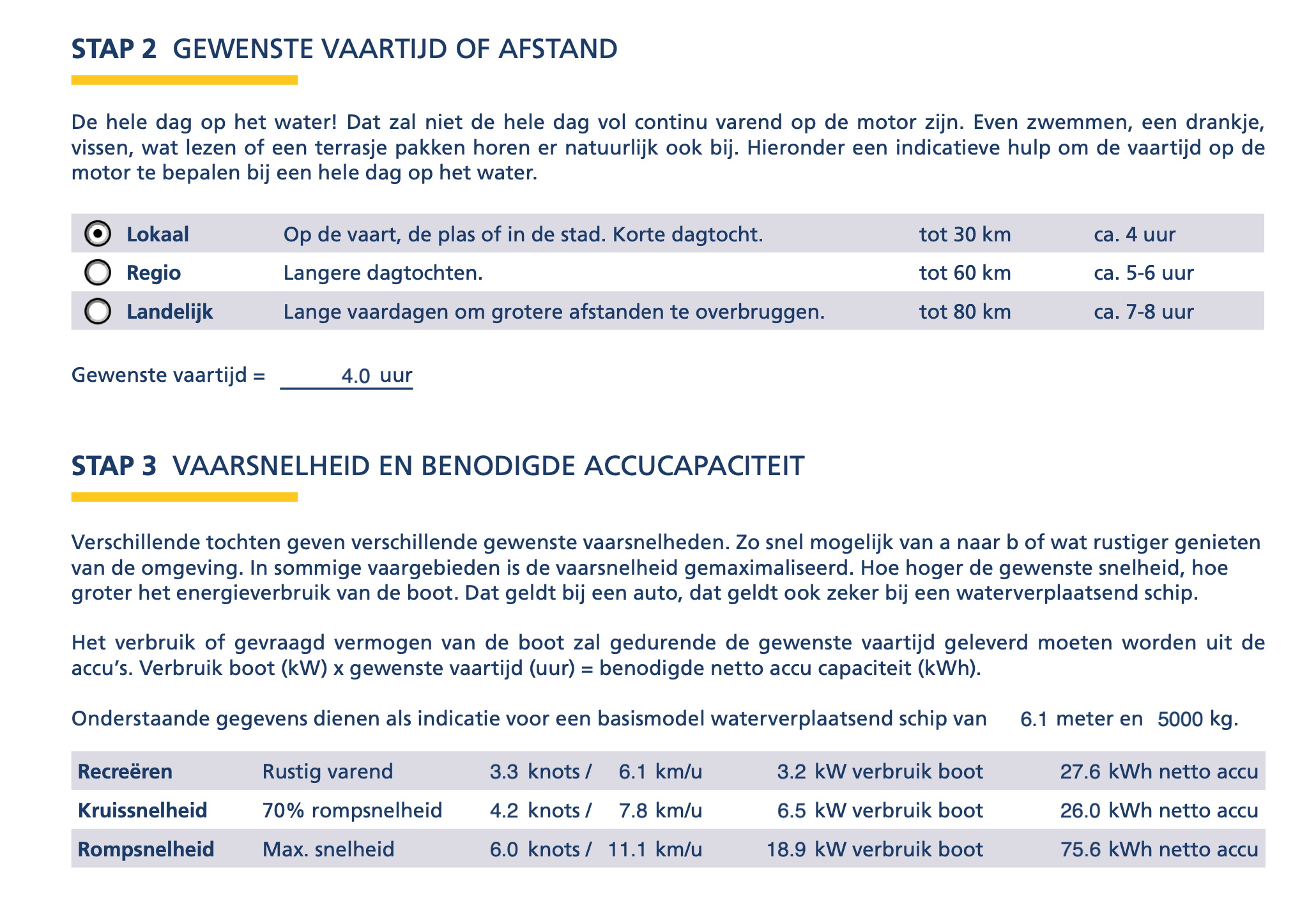 [Gewenst aantal vaaruren ….. U] x [Benodigd vermogen ….. kW]